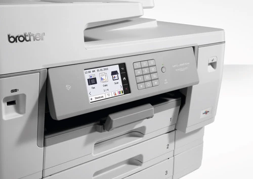 Met de Brother MFCJ6957DW heb je een 4-in-1 inkjetprinter voor een groot kantoor. Dankzij de drie papierlades bewaar je tot wel 750 vellen papier tegelijkertijd, waardoor je niet vaak papier bijvult. Print, kopieer, scan en fax op maximaal een A3 formaat. De printer beschikt over een automatische documentinvoer. Zo scan en kopieer je in één keer tot wel 50 vellen. Bespaar papier met de automatisch dubbelzijdige printfunctie. Je print bedraad met een usb kabel of draadloos via wifi direct, Apple AirPrint en e-mail print. Of bedien de printer met de Brother Mobile Connect app.