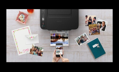 Met de Canon PIXMA TS3450 Zwart heb je een gebruiksvriendelijke all-in-one kleureninkjetprinter voor bij jou thuis. Je verbindt draadloze apparaten eenvoudig met de PIXMA printer door de Canon PRINT app. Ben je in een andere ruimte en heb je snel een rapport nodig? Print het document eenvoudig vanaf je smartphone of tablet. De Canon printer is compact, waardoor je hem op je bureau zet zonder dat hij veel ruimte in beslag neemt. Hij heeft 2 cartridges, namelijk een zwarte en een kleuren cartridge. De kleuren cartridge bevat de 3 basiskleuren, hierdoor heet dit een 3-in-1 cartridge. Dit bespaart je geld, omdat je maar één kleurencartridge aanschaft in plaats van 3.