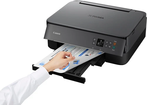 De Canon PIXMA TS5350a is een all-in-one inkjet printer voor thuisgebruik. Met deze printer druk je niet alleen af, je scant en kopieert hier ook mee. Door de hoge printresolutie van 1.200 bij 4.800 dots per inch print je scherpe afbeeldingen en grafieken. Je bewaart fotopapier en standaard papier gescheiden door de 2 afzonderlijke papierladen, de printer pakt automatisch het juiste papier. Maak verbinding met de printer door wifi direct, waardoor je je printer niet eerst verbindt met een modem. Print via Apple AirPrint en e-mail. Met de PIXMA TS5350a print je randloos, waardoor het hele papier bedekt is zonder witranden.