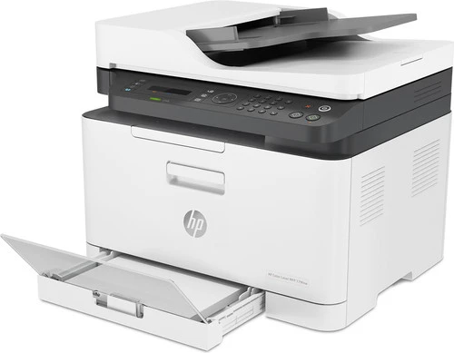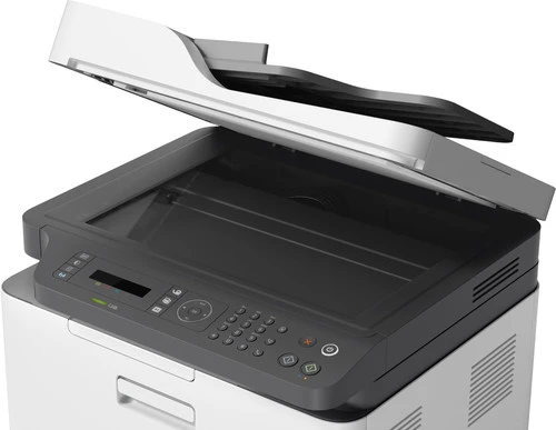 Print, scan, fax en kopieer in kleur met de HP Color Laser MFP 179fnw. Met een afdruksnelheid tot 18 pagina’s per minuut is deze printer geschikt voor intensieve thuisgebruikers of medewerkers van een klein bedrijf. Met de automatische documentinvoer scan of kopieer je in één keer een hele stapel documenten. Je scant verschillende documenten zoals ID kaarten of boeken. Tekst maak je bewerkbaar en boeken sla je op als e-book. Je sluit de 179fnw zowel bekabeld als draadloos aan op je netwerk. Vervolgens print je gemakkelijk via netwerk of wifi vanaf je computer, laptop, tablet of smartphone. Met de voorgeïnstalleerde toner print je tot 700 kleurenpagina’s.
