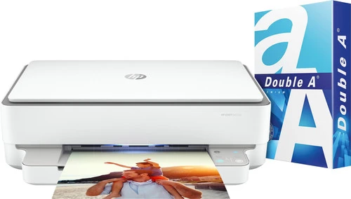 Ontvang een pak papier bij je printer met de HP ENVY 6020e + 500 vellen A4 papier bundel. De HP Envy 6020e is voor ieder gezin een geschikte all-in-one kleuren inkjet printer. Je print, scant en kopieert opdrachten voor school en tickets voor de bioscoop. Zelfs wanneer je in een andere kamer bent, stuur je draadloos je printopdracht naar de printer met de HP Smart-app. Daarnaast zie je in de app ook wat het inktniveau is en ontvang je meldingen als de printer klaar is met printen. De printer heeft een zwarte en een 3-in-1 kleurencartridge. In de kleurencartridge zitten alle basiskleuren die nodig zijn voor het printen in kleur.