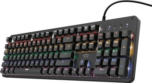 Met de mechanische switches van het Trust GXT 863 Mazz Mechanisch Gaming Toetsenbord heb jij alle controle over je bewegingen. De toetsen zijn namelijk zo gevoelig dat je elke toetsaanslag goed voelt door de rode outemu switches. Met de led verlichting laat je jouw toetsenbord oplichten in alle kleuren van de regenboog. Daarbij kies je verschillende lichtpatronen en pas je de helderheid zelf aan. Door de anti-ghosting en de speciale gaming modus is de Mazz zeer geschikt voor het spelen van games. Wil je tijdens een potje Fortnite even je muziek veranderen? Met de multimedia sneltoetsen bedien jij bijvoorbeeld razendsnel het volume van je muziek.