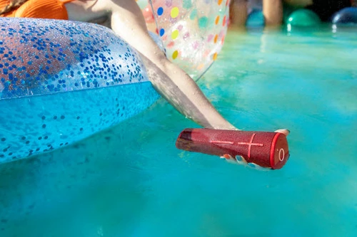 Het stof- en waterbestendige ontwerp maakt de speaker geschikt voor buitenshuis gebruik.
