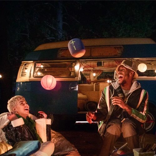 Het val-, stof- en spatwaterbestendige ontwerp maakt de speaker geschikt voor buitenshuis gebruik.